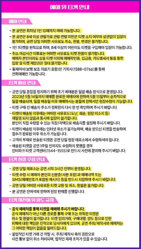 1. 매표소 운영 시간: 공연 시작 3시간 전 ~ 공연 시작 30분 후