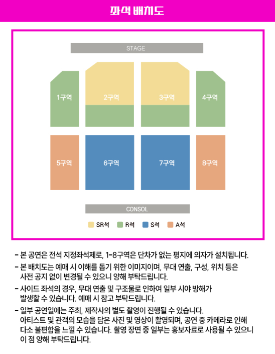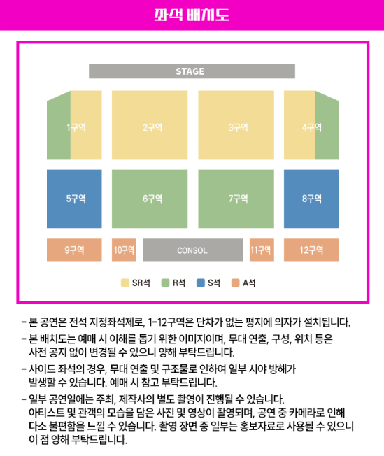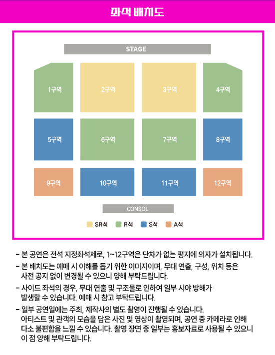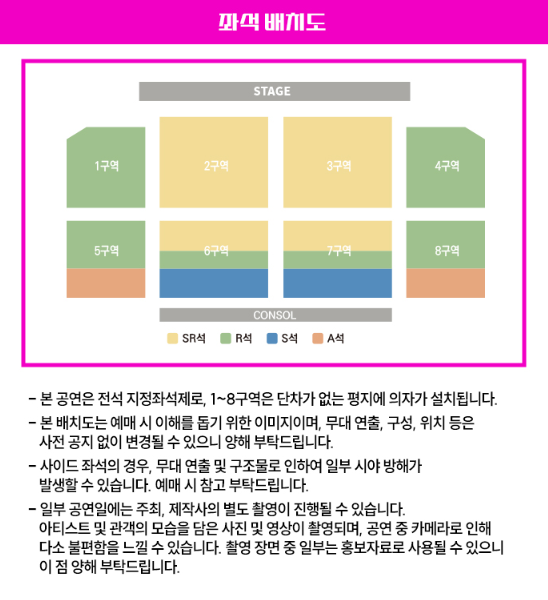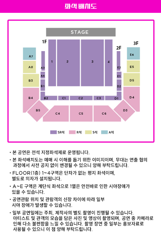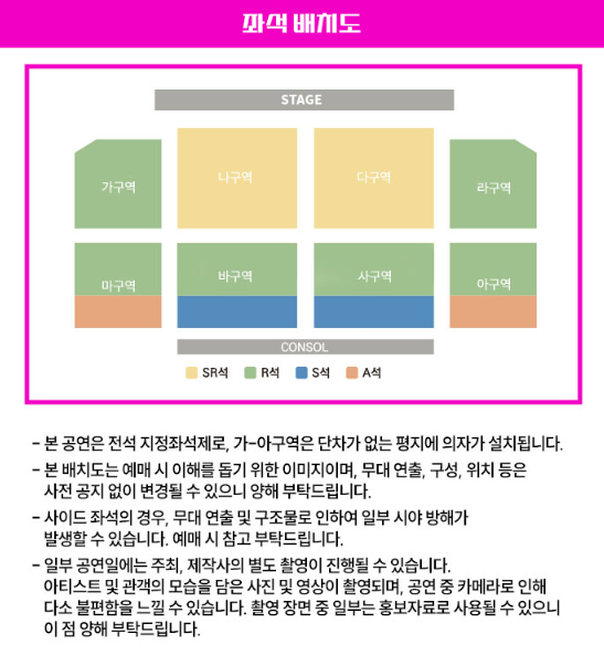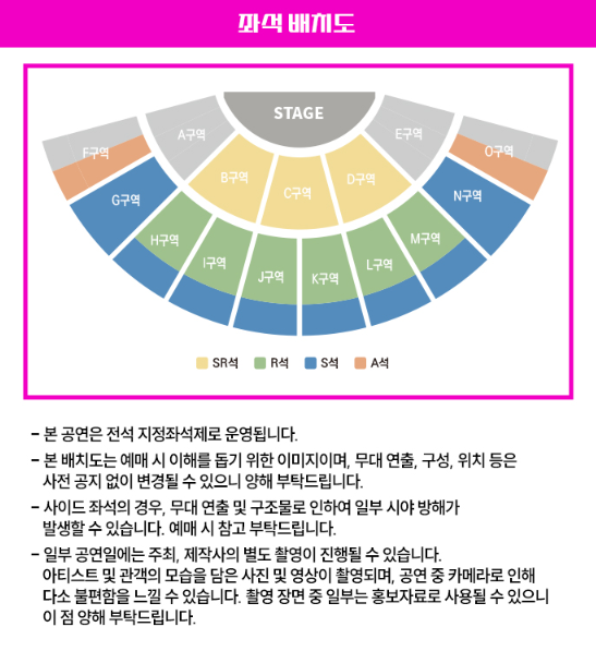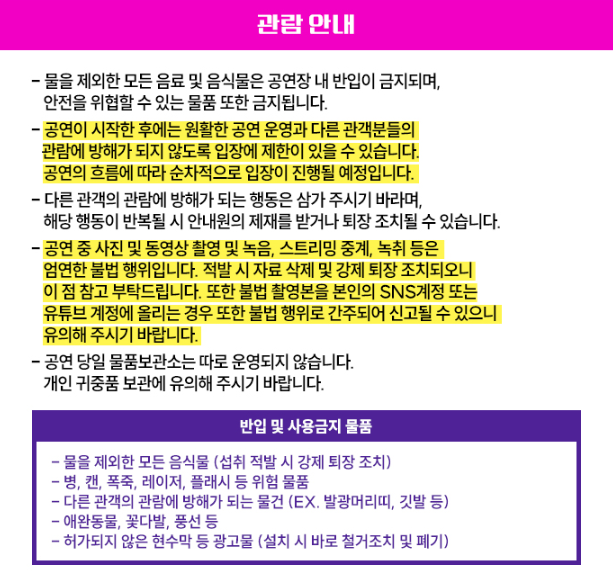 공연 중 사진 및 도영상 촬영 및 녹음, 스트리밍 중계, 녹취 등은 엄연한 불법 행위로 적발 시 자료 삭제 및 강제 퇴장 조치돤다고 하니 이점 유의해 주시기 바랍니다.