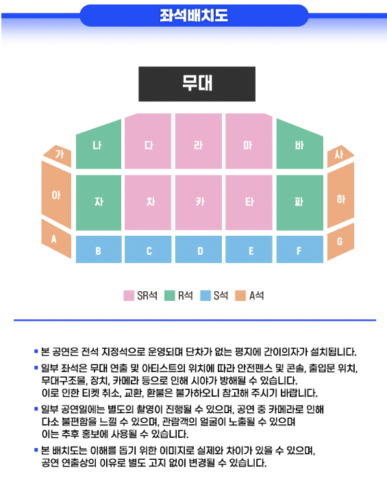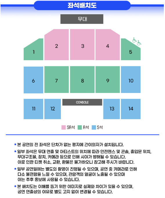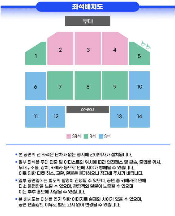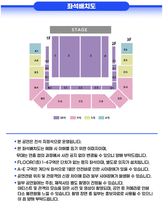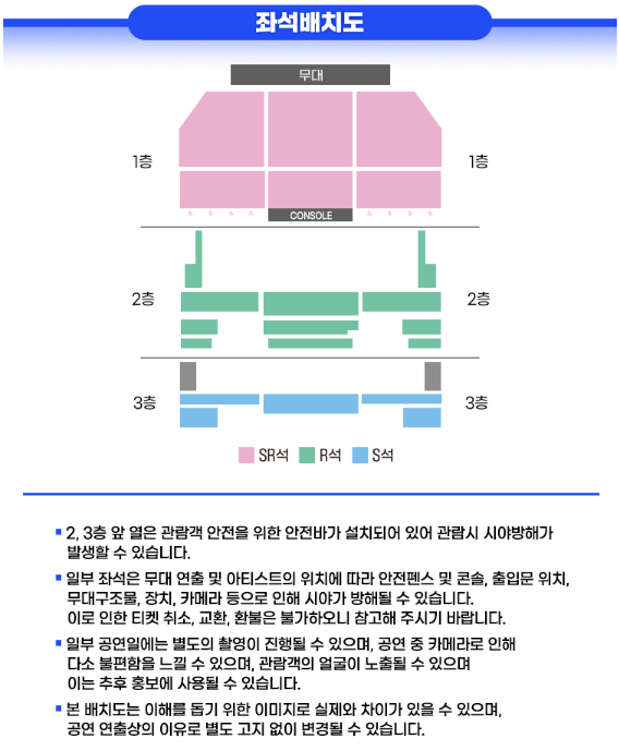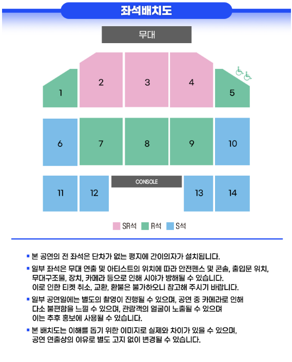 - 티켓가격 : SR석 15,4000원 / R석 132,000원 / S석 110,000원