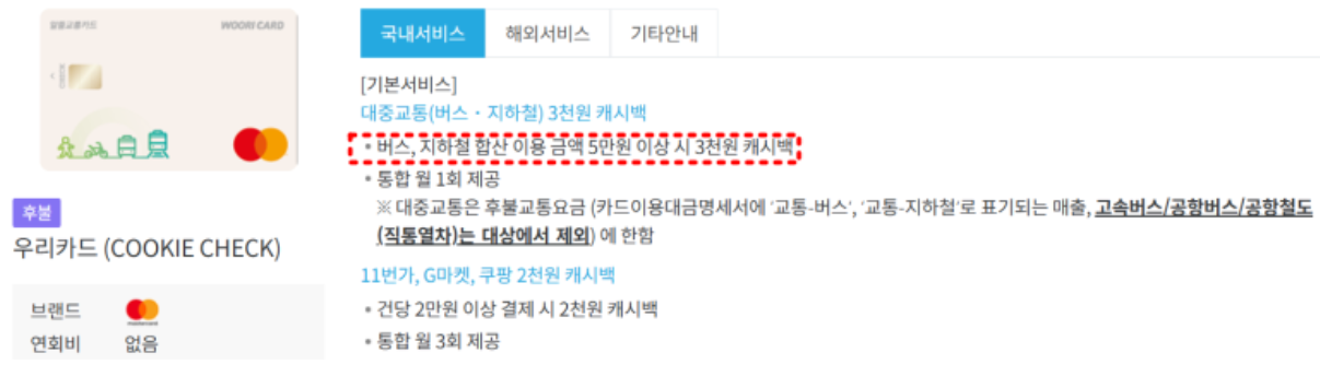 2. [우리카드] 알뜰교통카드(COOKIE CHECK)