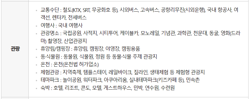 두 번째로 관광 문화누리카드 사용처는 교통과 테마파크, 여행사, 숙박으로 나뉘는데요.