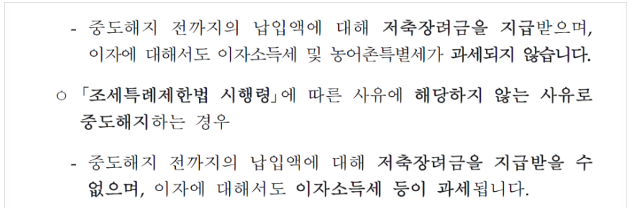 *중간에 해지가 가능한 경우는 해외이주 퇴직, 폐업, 천재지변, 장기치료, 생초 주택 구입 등